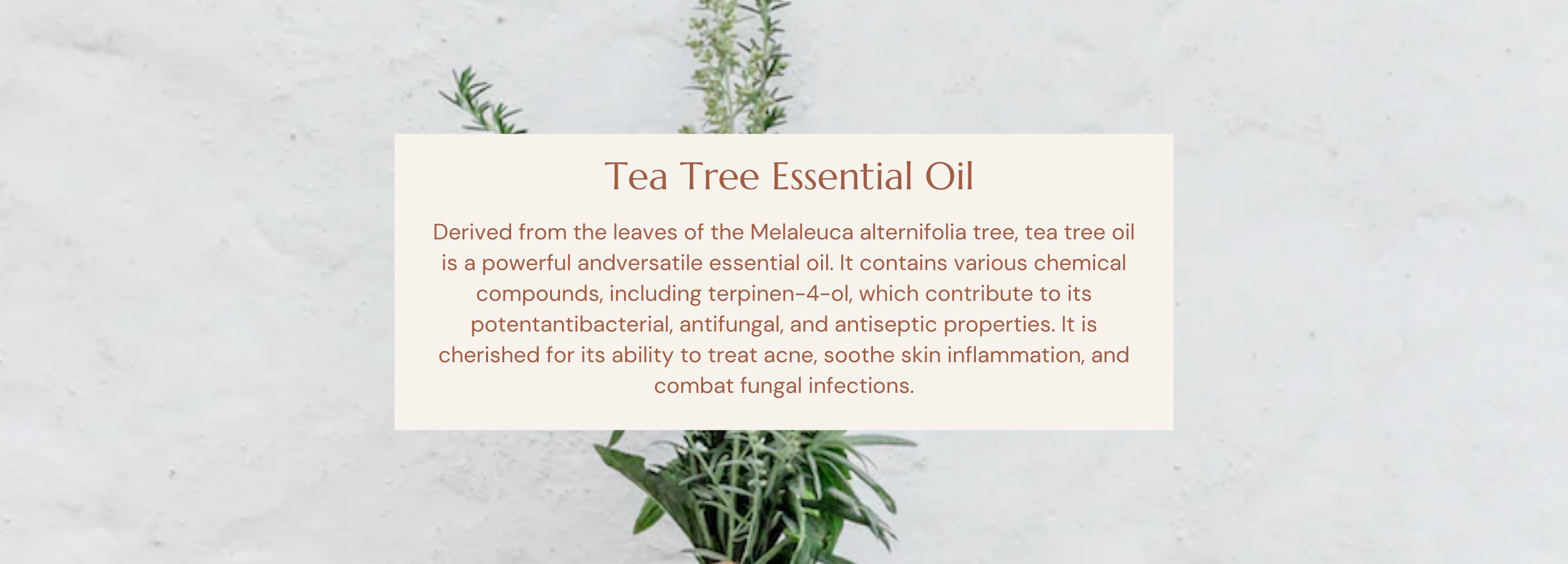 Tea Tree Essential Oil: A powerful and purifying oil derived from the