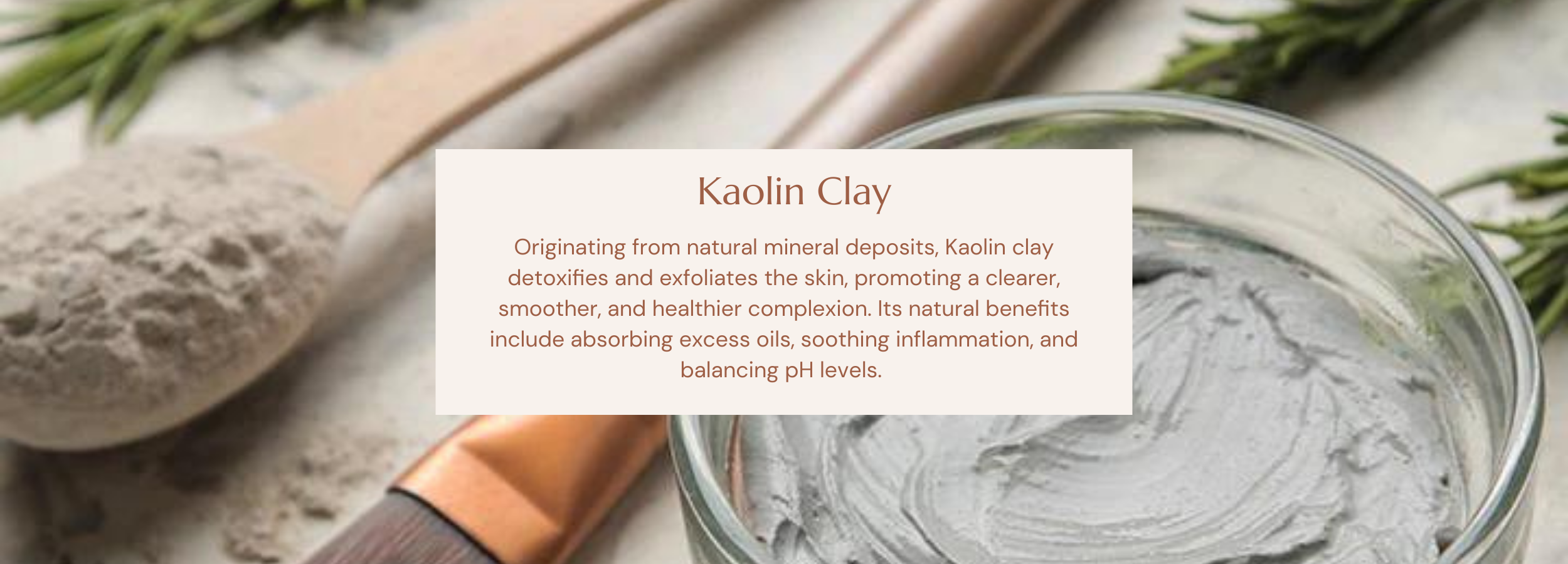 Kaolin Clay: A gentle and versatile mineral clay that purifies, exfoliates, and softens the skin