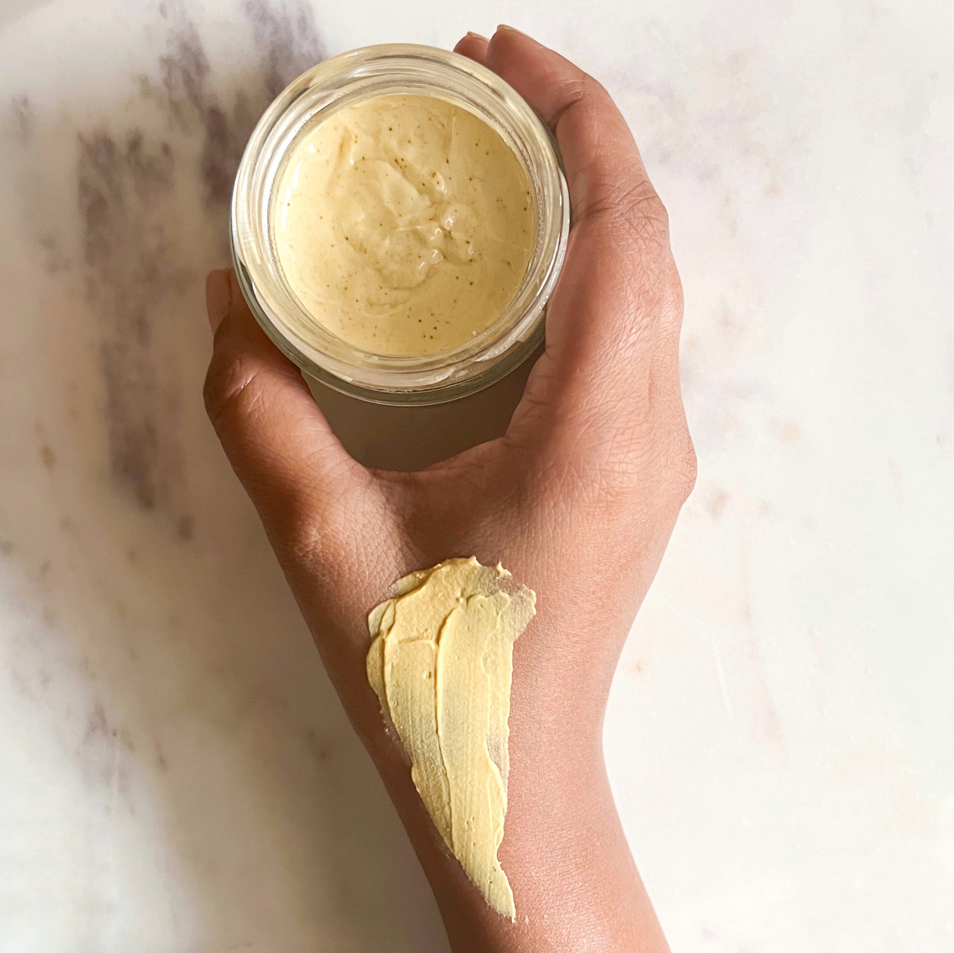 Aqua, Kaolin Clay, Avocado Oil, Emulsifying Wax NF*, BTMS 50 Wax*, Carrot Extract, Turmeric Powder, Carrot Seed Essential Oil, Iscaguard PEG