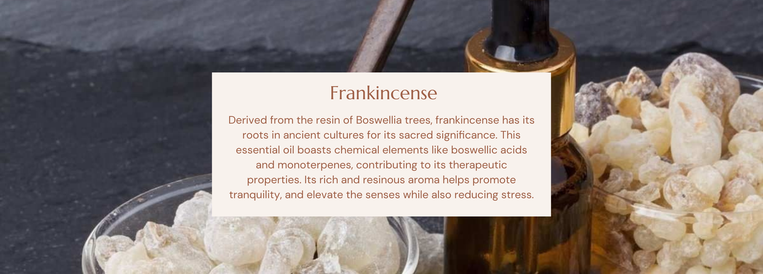 Frankincense Essential Oil: A resinous and aromatic oil derived from Boswellia trees