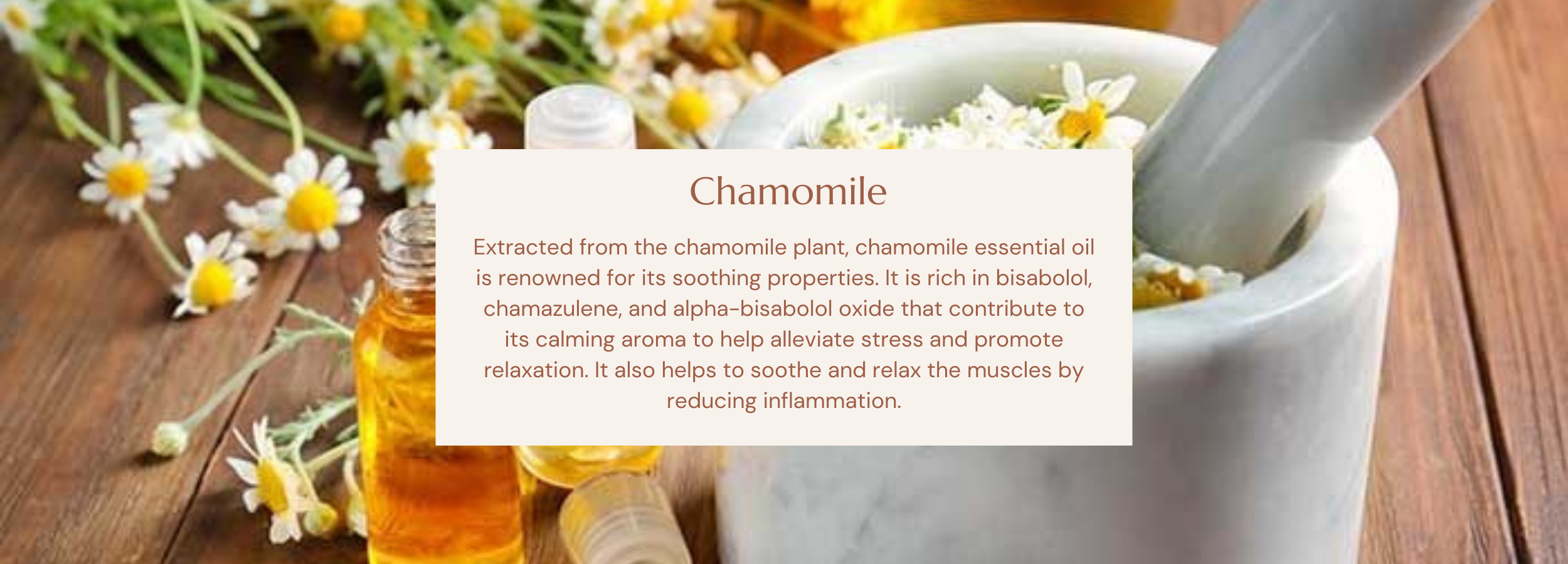 Chamomile Essential Oil: A gentle and soothing oil derived from chamomile flowers