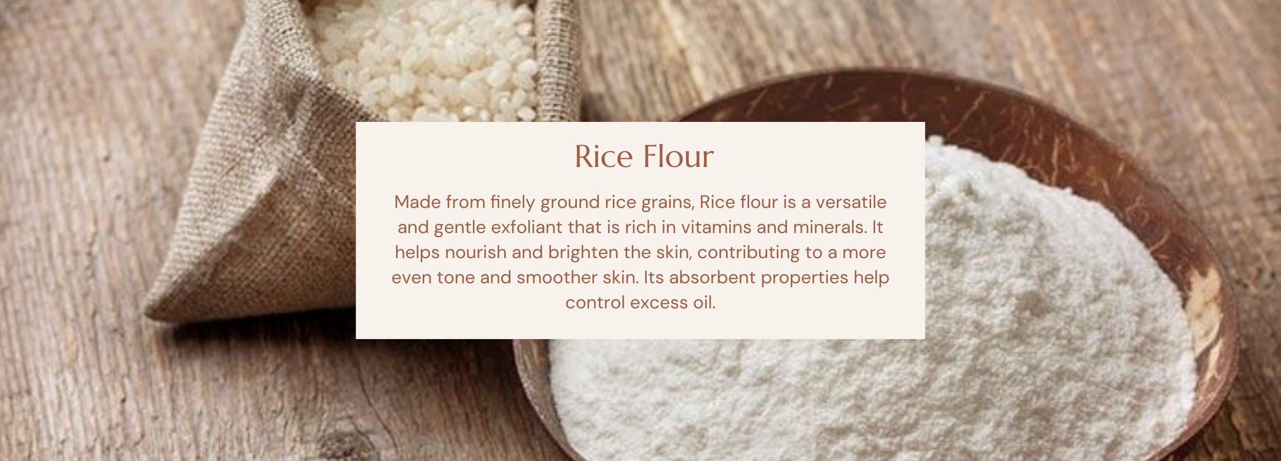 Rice Flour: A finely ground powder made from rice that brightens and smoothens the skin