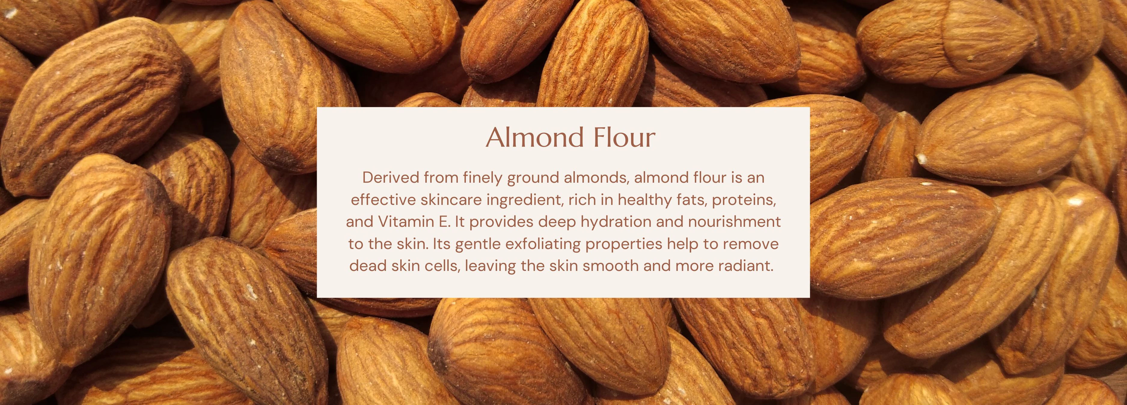 Almond Flour: A finely ground powder made from almonds to nourish and hydrate the skin