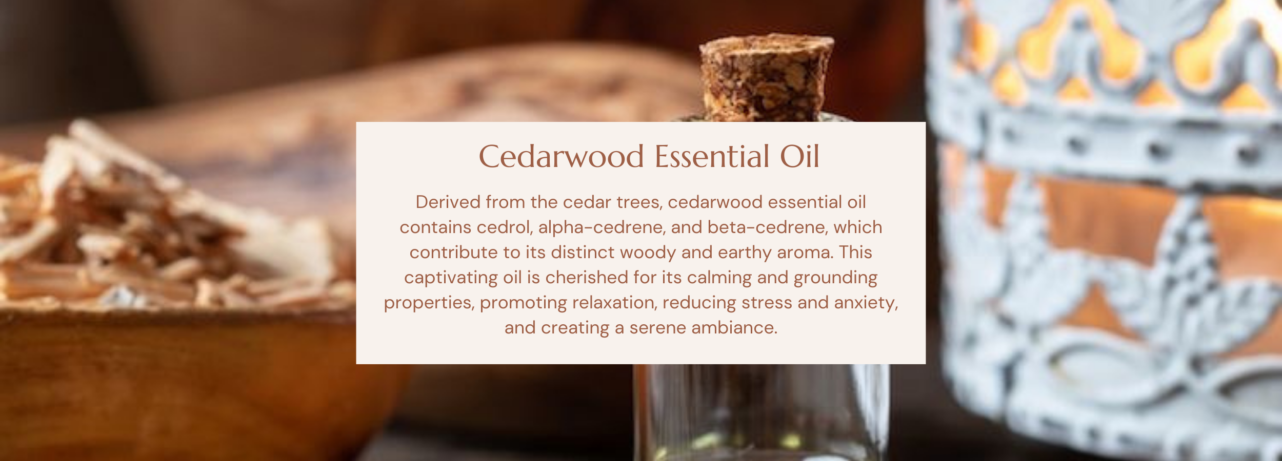 Cedarwood Essential Oil: A grounding and woody oil derived from cedar trees
