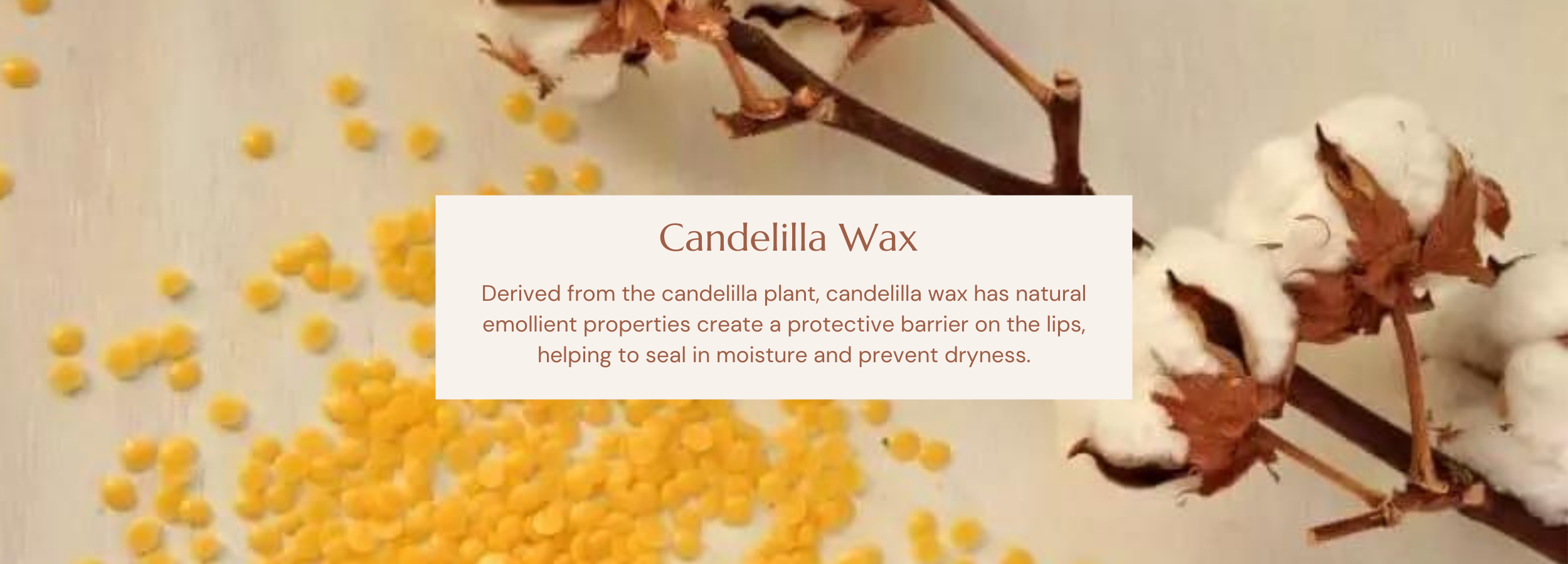 Candelilla Wax: A plant based wax that acts as a protective barrier on the skin and seals in moisture